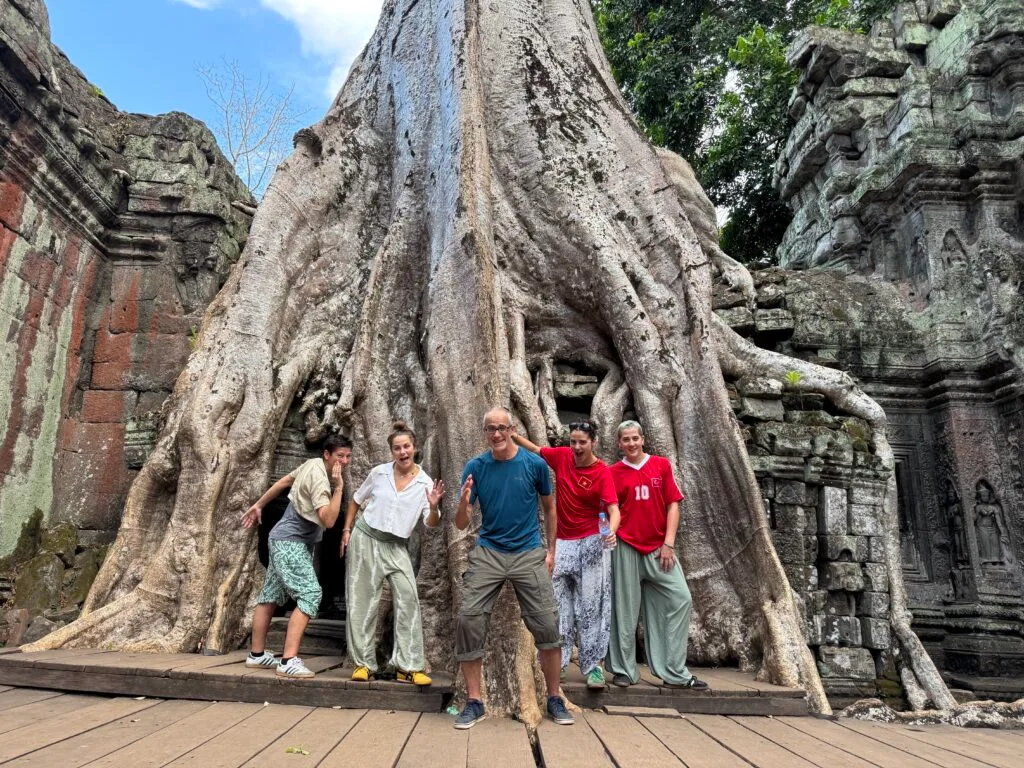 Explore Ta Prohm, known as the “Tree Temple”